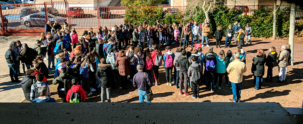 La comunidad educativa se reúne en el patio del centro, se lee un manifiesto, se entierra una cápsula del tiempo que contiene deseos para la mejora de la convivencia, y se planta un almez donado por el Ayuntamiento como símbolo de la paz para apoyar valores relacionados con el respeto y la buena convivencia.