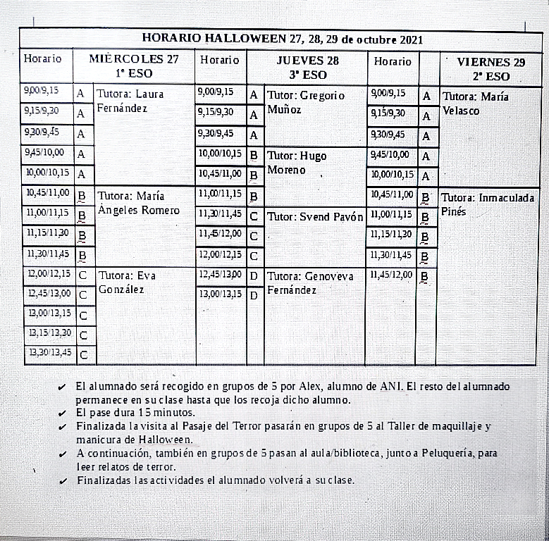 Durante los dia 27, 28 y 29 de Octubre y con arreglo al plan siguiente tuvieron lugar dinamizaciones y juegos sobre la festividad de Halloween.
