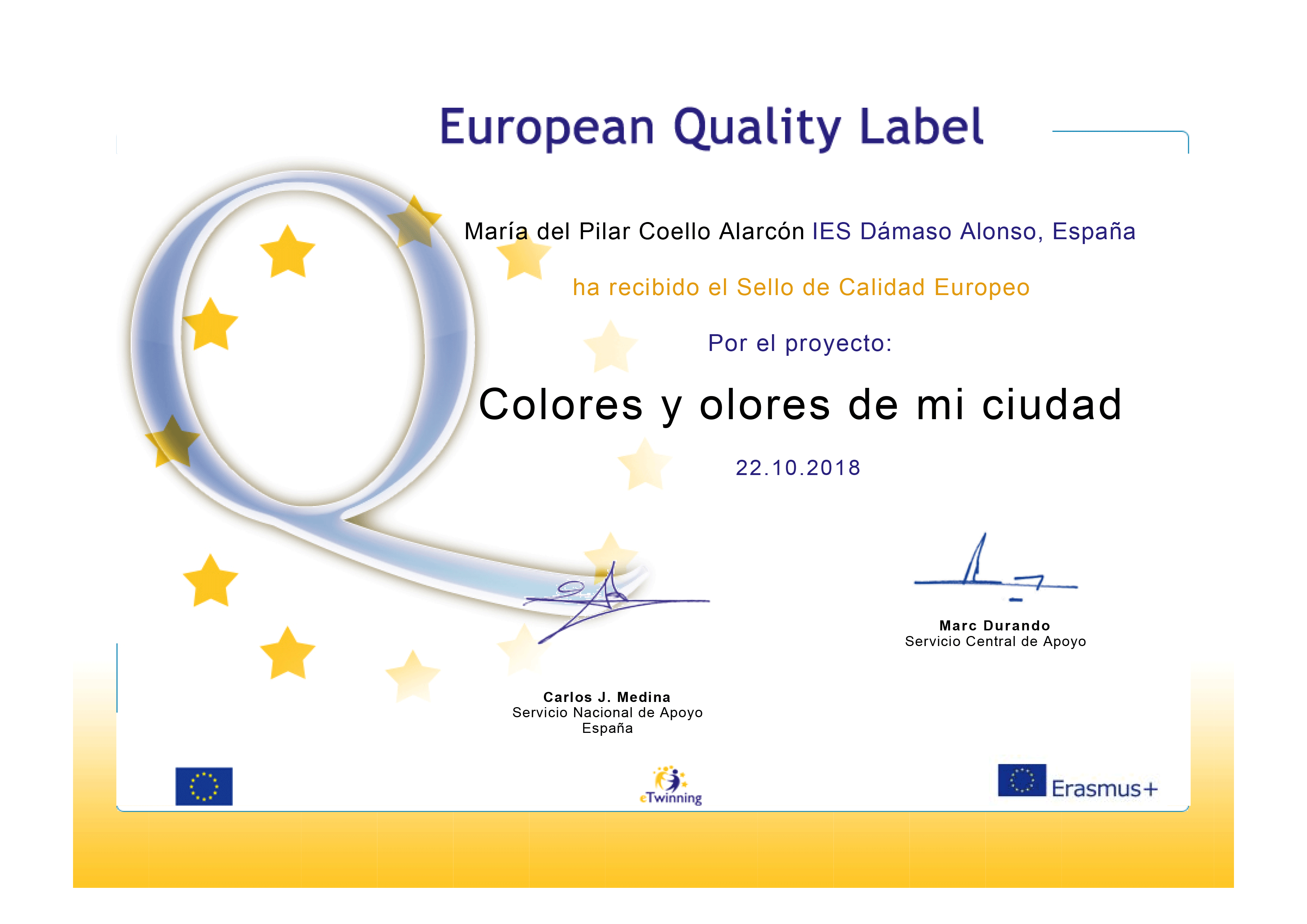 La profesora María del Pilar Coello Alarcón recibe ahora el Sello de Calidad Europeo por el proyecto «Colores y olores de mi ciudad».