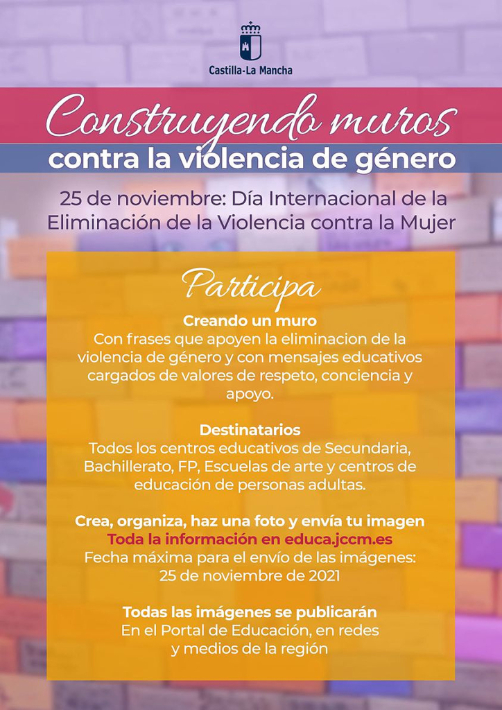 Se trata de construir un muro contra la violencia de genero, con ladrillos/trajetas de cartulina, … que incluyan mensajes del alumnado y profesorado conra la violencia hacia las mujeres.