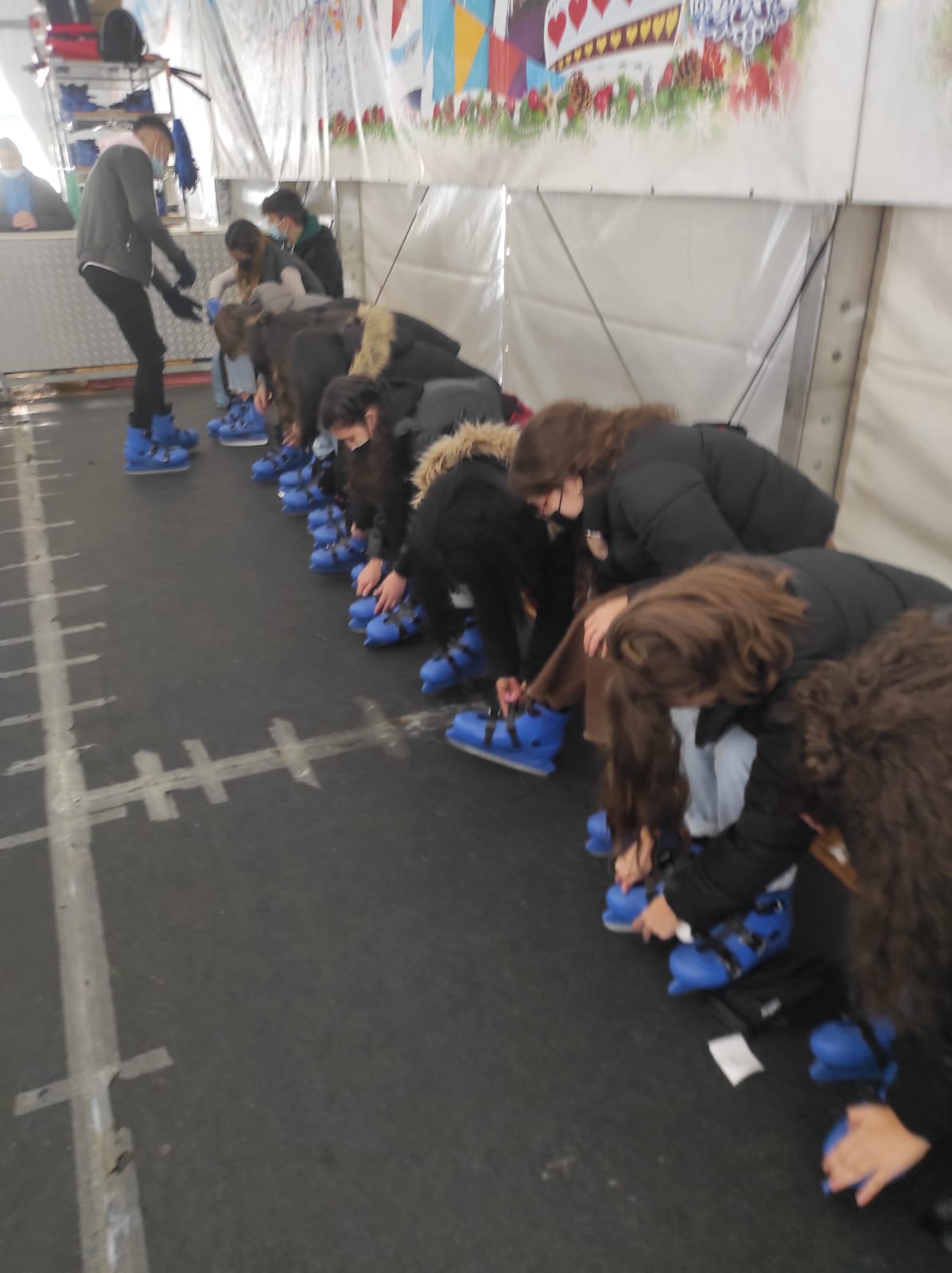 Aqui podemos verlos preparando su atuendo para patinar …